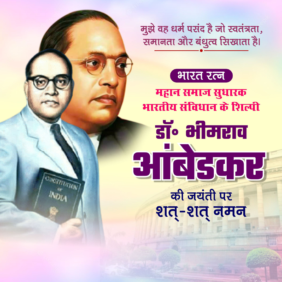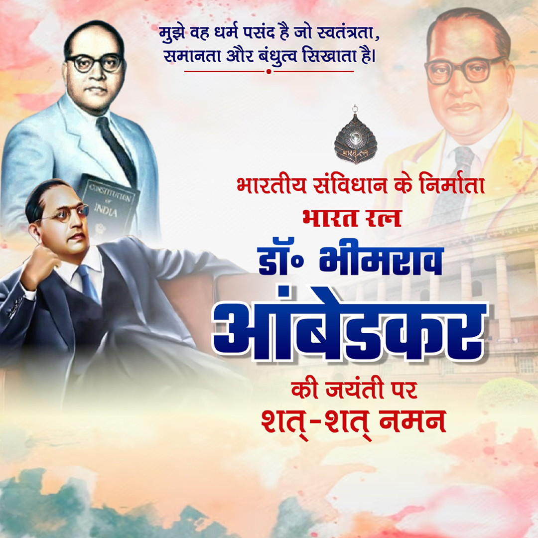 "आज का दिन है बड़ा महान, बनकर सूरज चमका इक इंसान, कर गये सबके भले का ऐसा काम, बना गये हमारे देश का संविधान, अंबेडकर जयंती की हार्दिक शुभकामनाएं।"