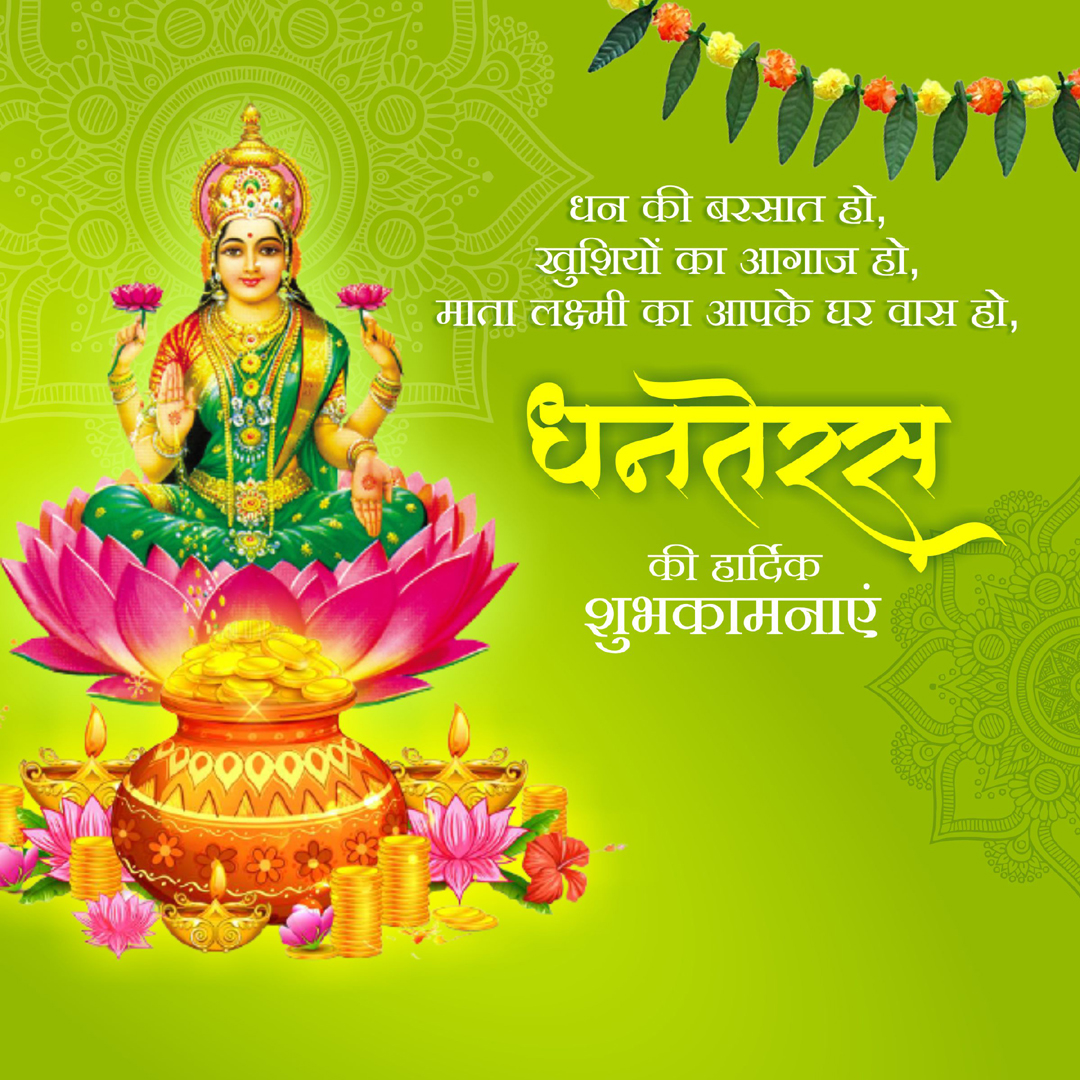 "धनतेरस का ये प्यारा त्योहार, आपके जीवन में लाये खुशियाँ अप्पर, माता लक्ष्मी विराजे आपके द्वार, सभी कामना आपकी करे स्वीकार."