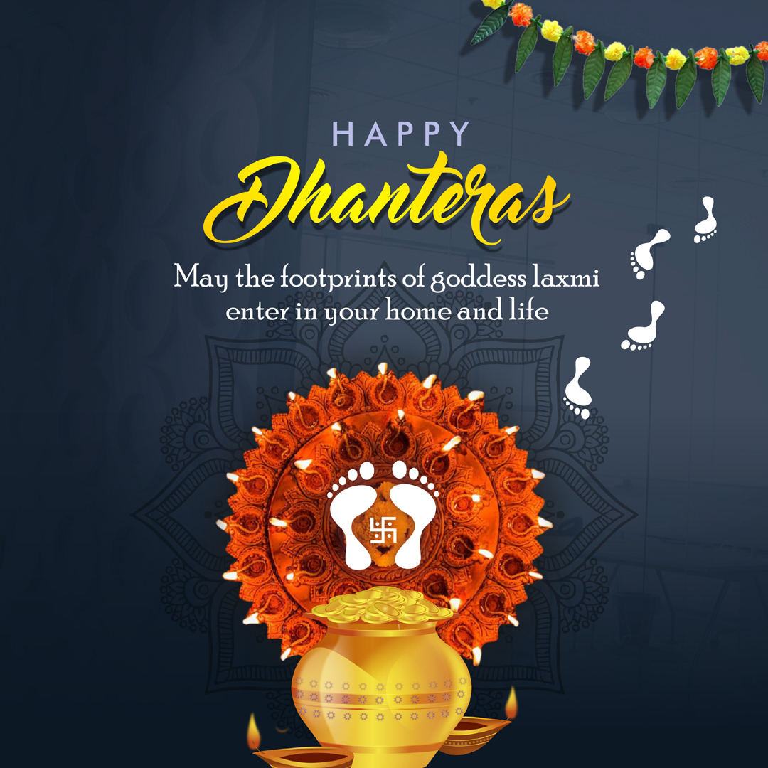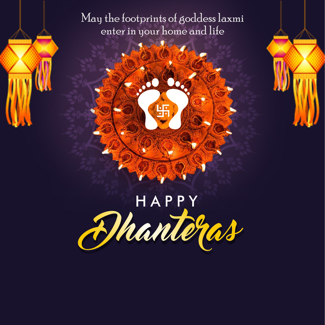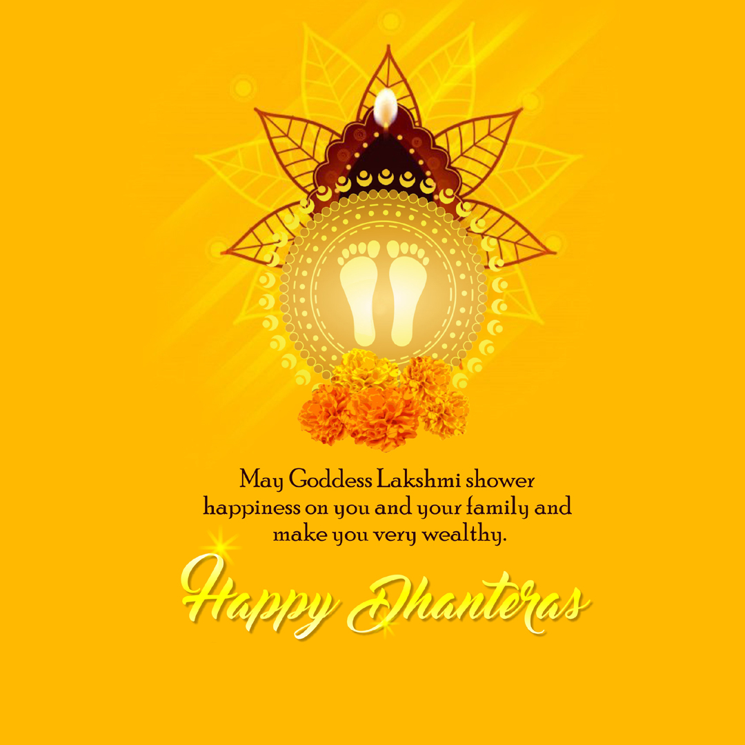 "May this Dhanteras shower you with wealth and prosperity as you journey towards greater success. Happy Dhanteras!!"