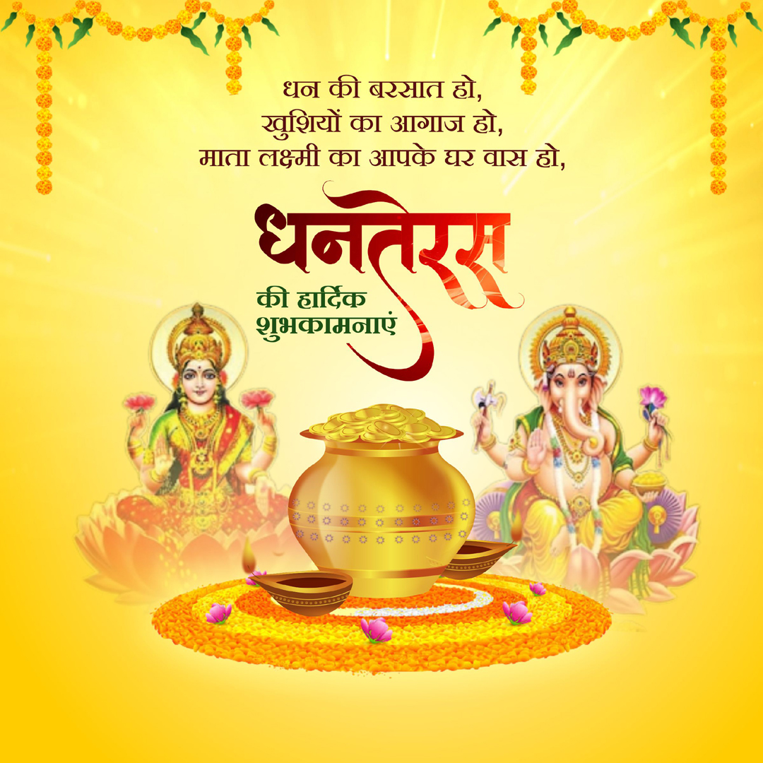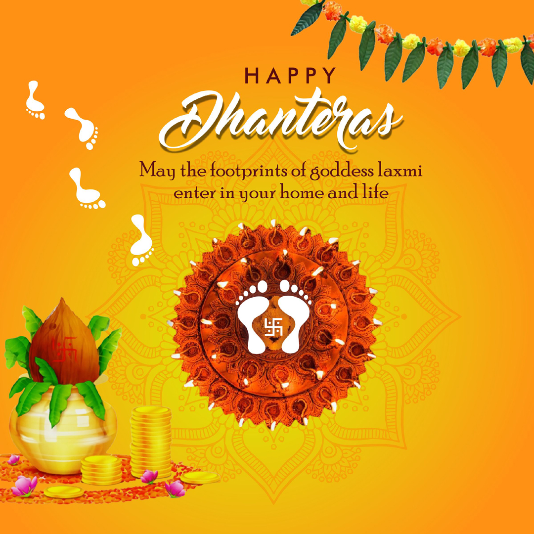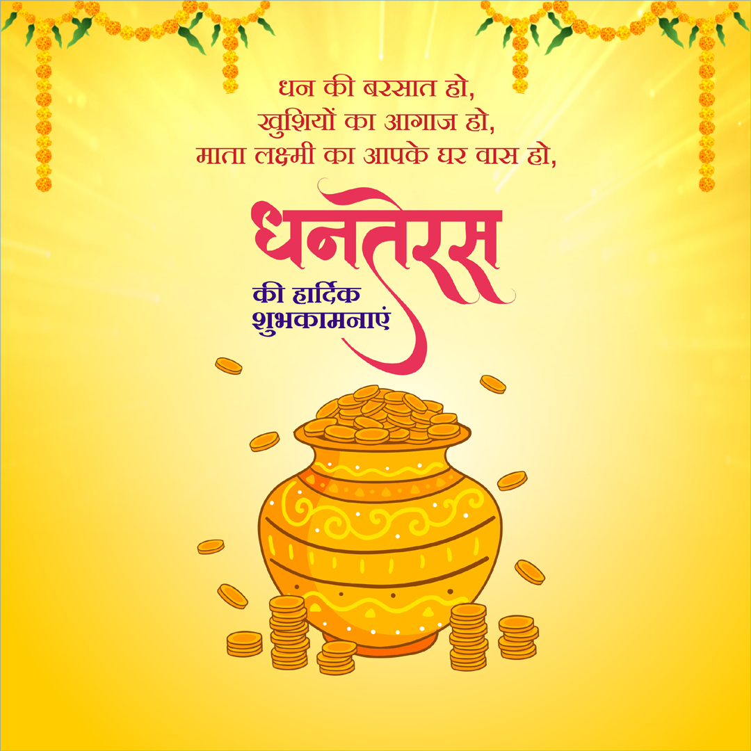 "May this Dhanteras shower you with wealth and prosperity as you journey towards greater success. Happy Dhanteras!!"