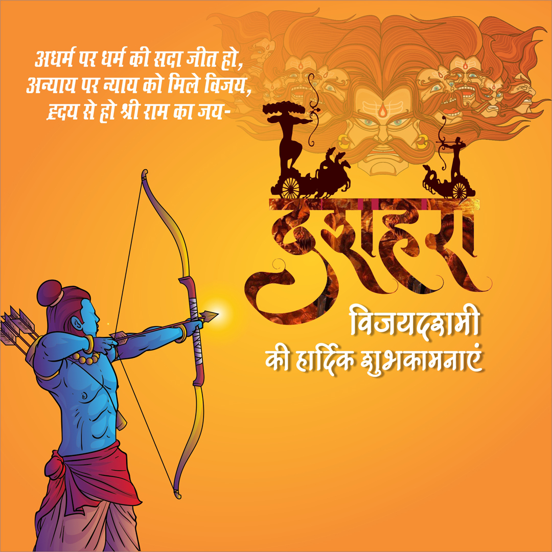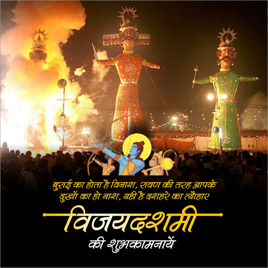 “विजयदशमी पर विजय का प्रतीक हैं श्रीराम बुराई पर अच्छाई का प्रतीक हैं श्री राम दशहरा पर्व की शुभकामनाएं”