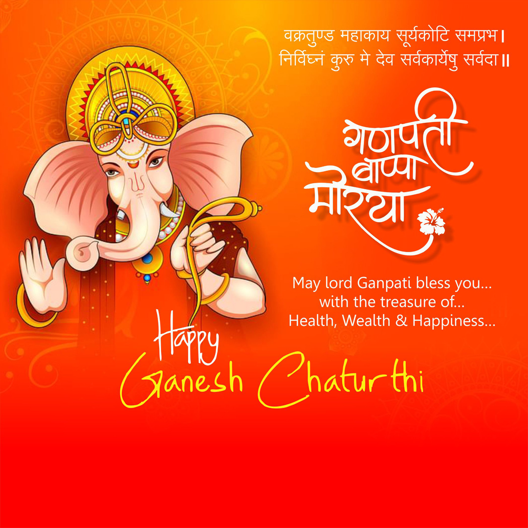 "May lord Ganpati bless you… with the treasure of… Health, Wealth & Happiness… Happy Ganesh Chaturthi"