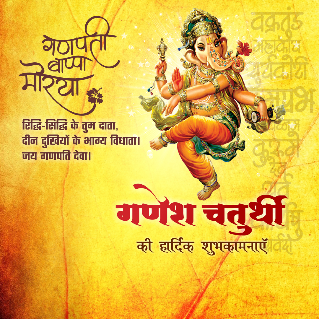 "गणपति बाप्पा मोरया। रिद्धि-सिद्धि के तुम दाता, दीन दुखियों के भाग्य विधाता। जय गणपति देवा। गणेश चतुर्थी की हार्दिक शुभकामनाए”