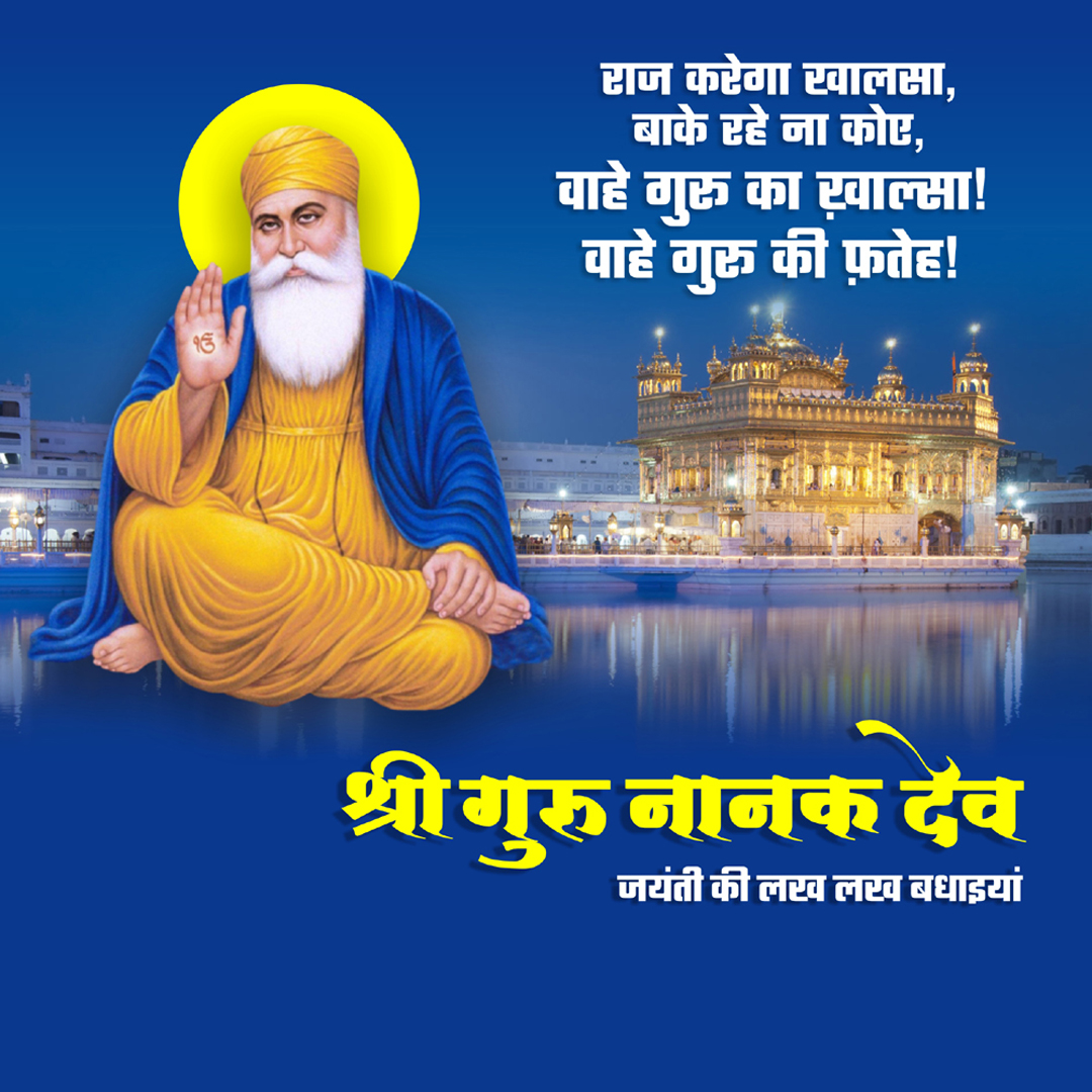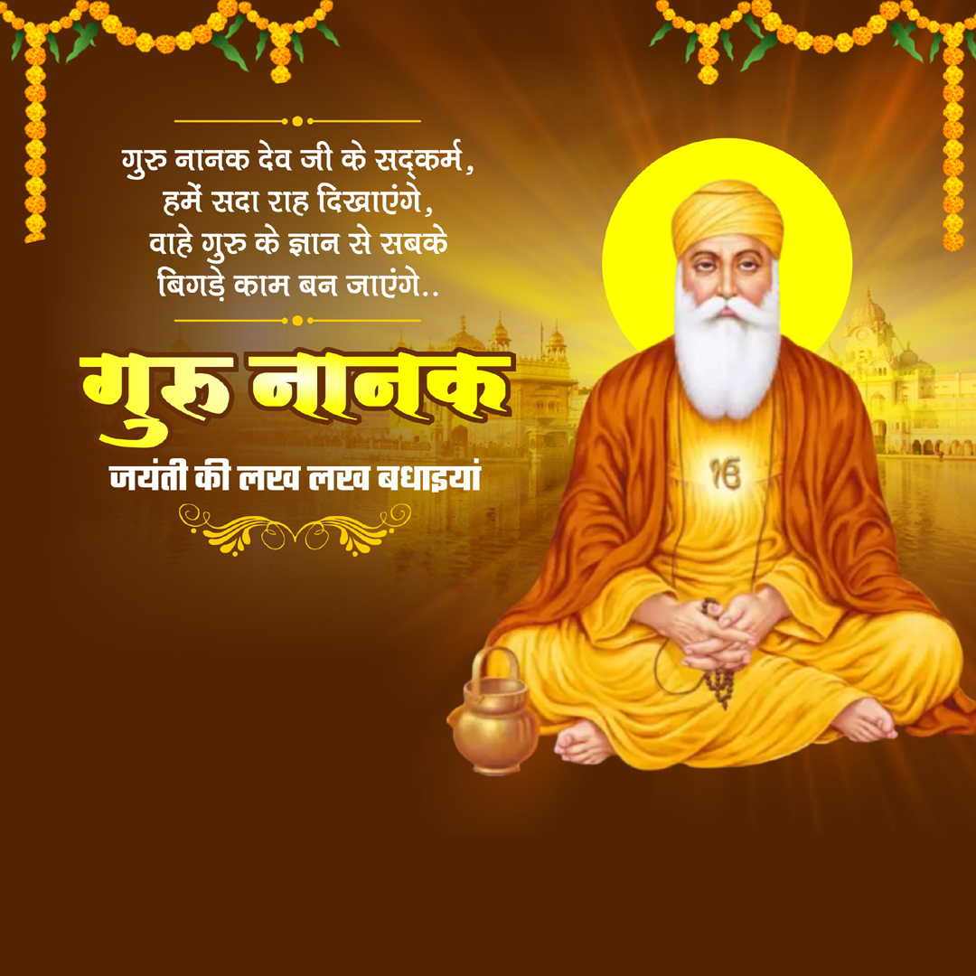 “गुरु नानक देव जी के सद्कर्म, हमें सदा राह दिखाएंगे, वाहे गुरु के ज्ञान से सबके बिगड़े काम बन जाएंगे.. Happy Guru Nanak Jayanti