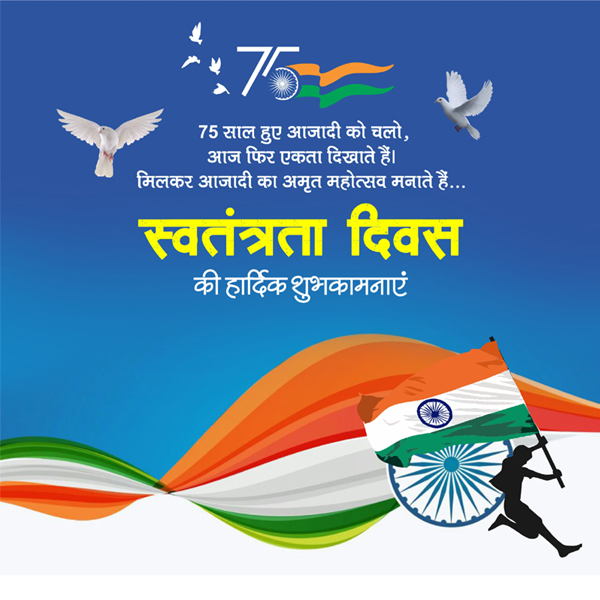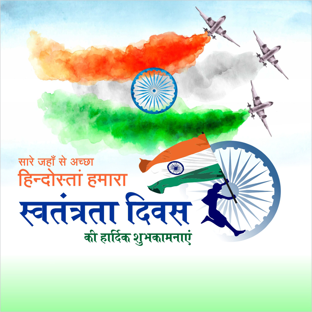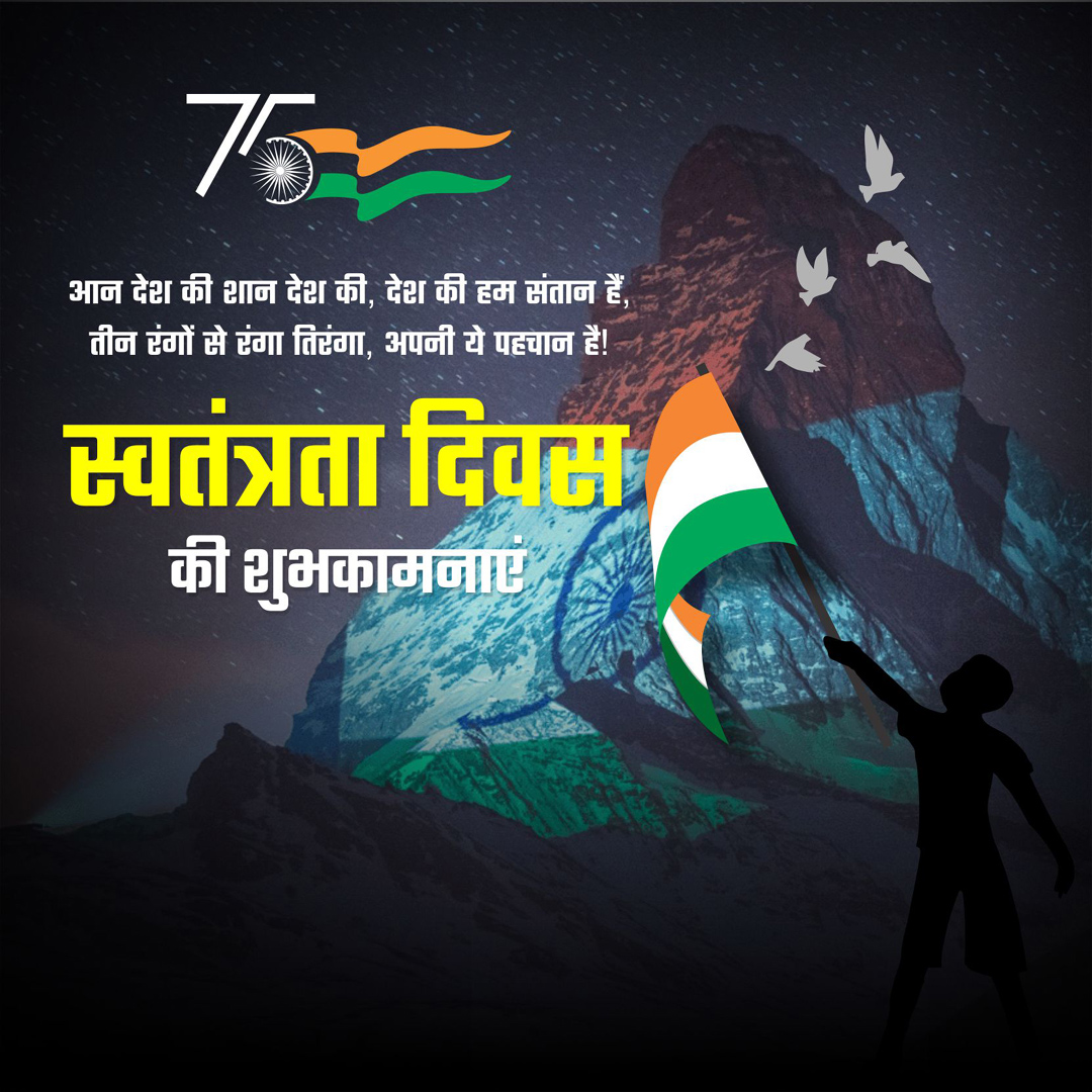 ""गूंज रहा है दुनिया में हिंदुस्तान का नारा, चमक रहा है आसमान में तिरंगा हमारा। Happy Independence Day !”