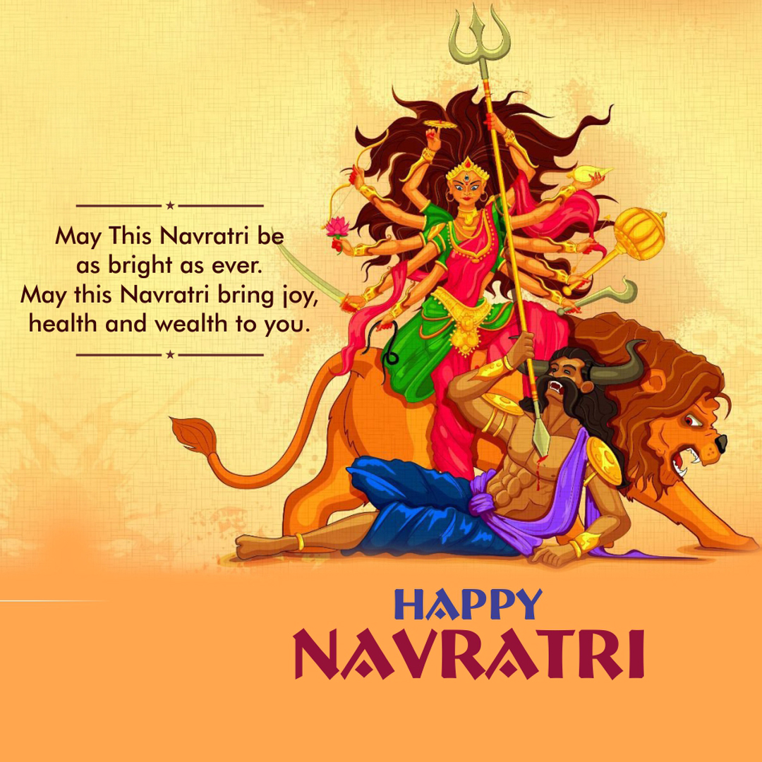 “May this Navratri brighten up your life With joy, wealth, and good health."