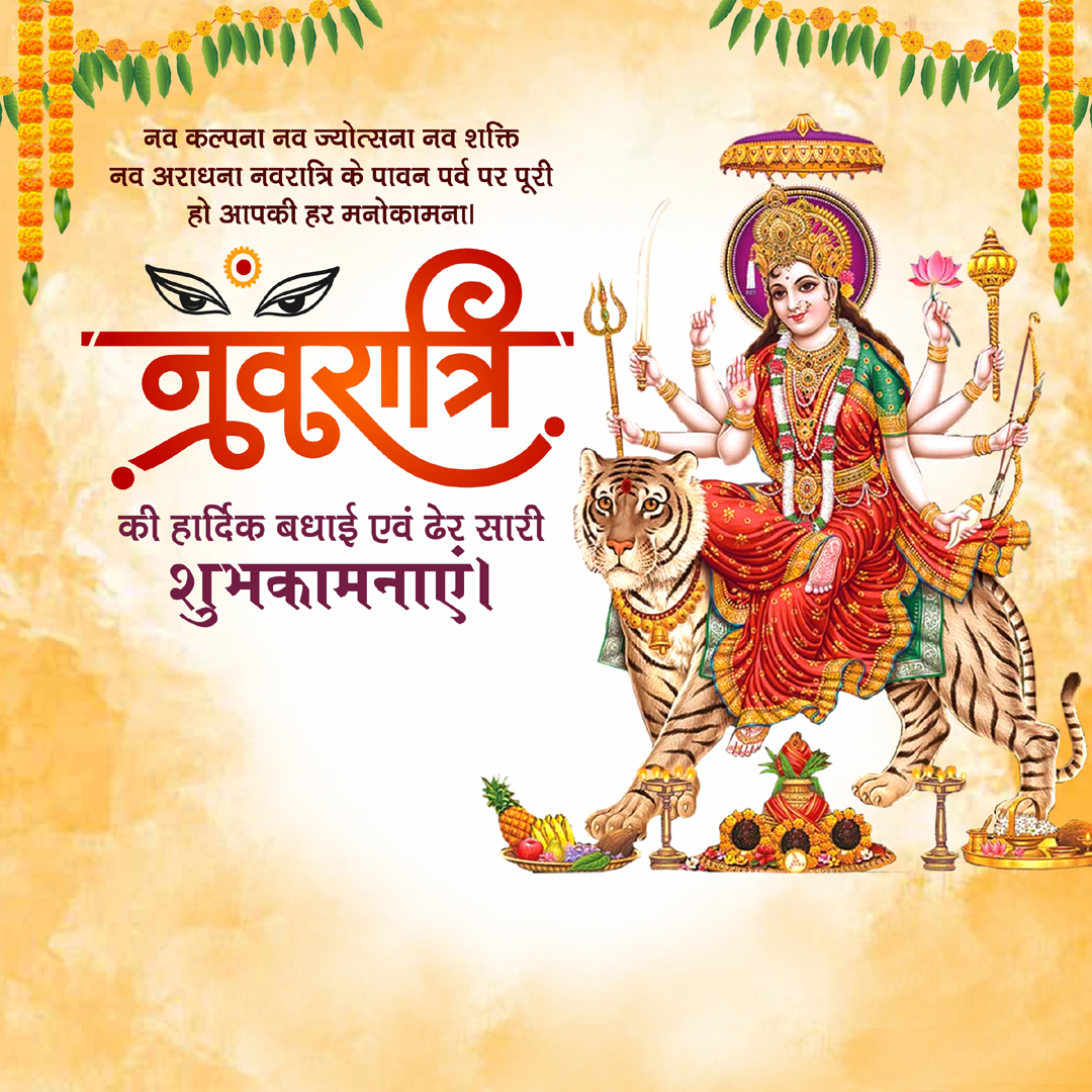 “नव कल्पना नव ज्योत्सना नव शक्ति नव अराधना नवरात्रि के पावन पर्व पर पूरी हो आपकी हर मनोकामना।”