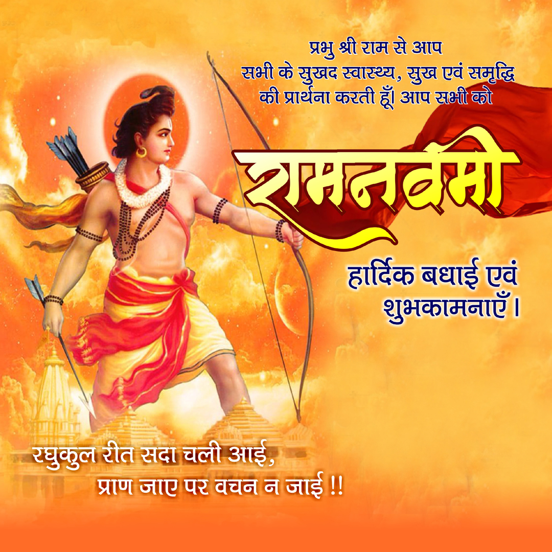 "रामनवमी के अवसर पर, आप और आपके परिवार पर, राम जी का आशीर्वाद, हमेशा बना रहे रामनवमी की आपको और आपके परिवार को हार्दिक शुभकामनाएं"