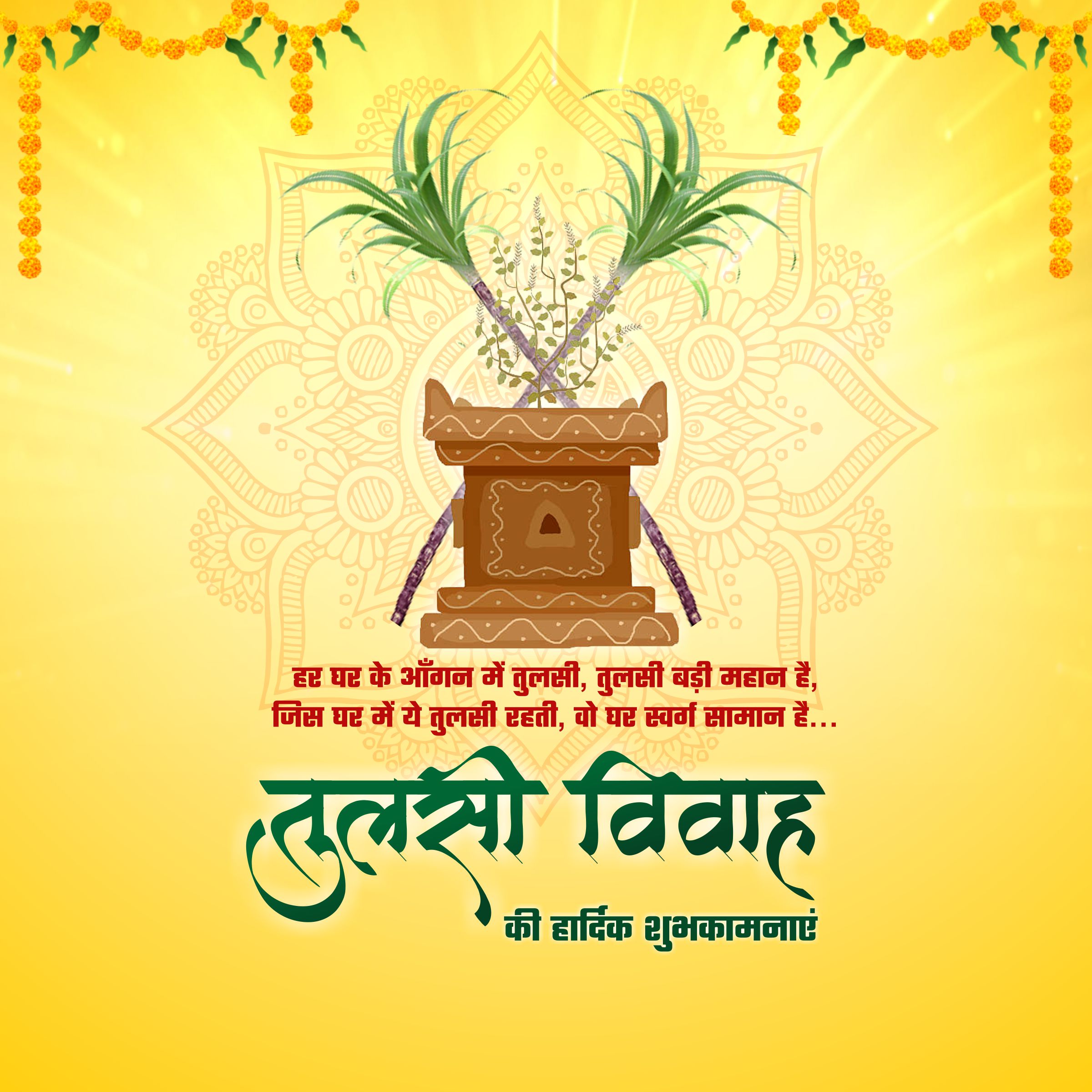"मंडप सजा है, अब तुलसी विवाह रचाएंगे, आप भी होना शामिल, हम सब मिलकर तुलसी का विवाह कराएंगे. तुलसी विवाह की शुभकामनाएं!"