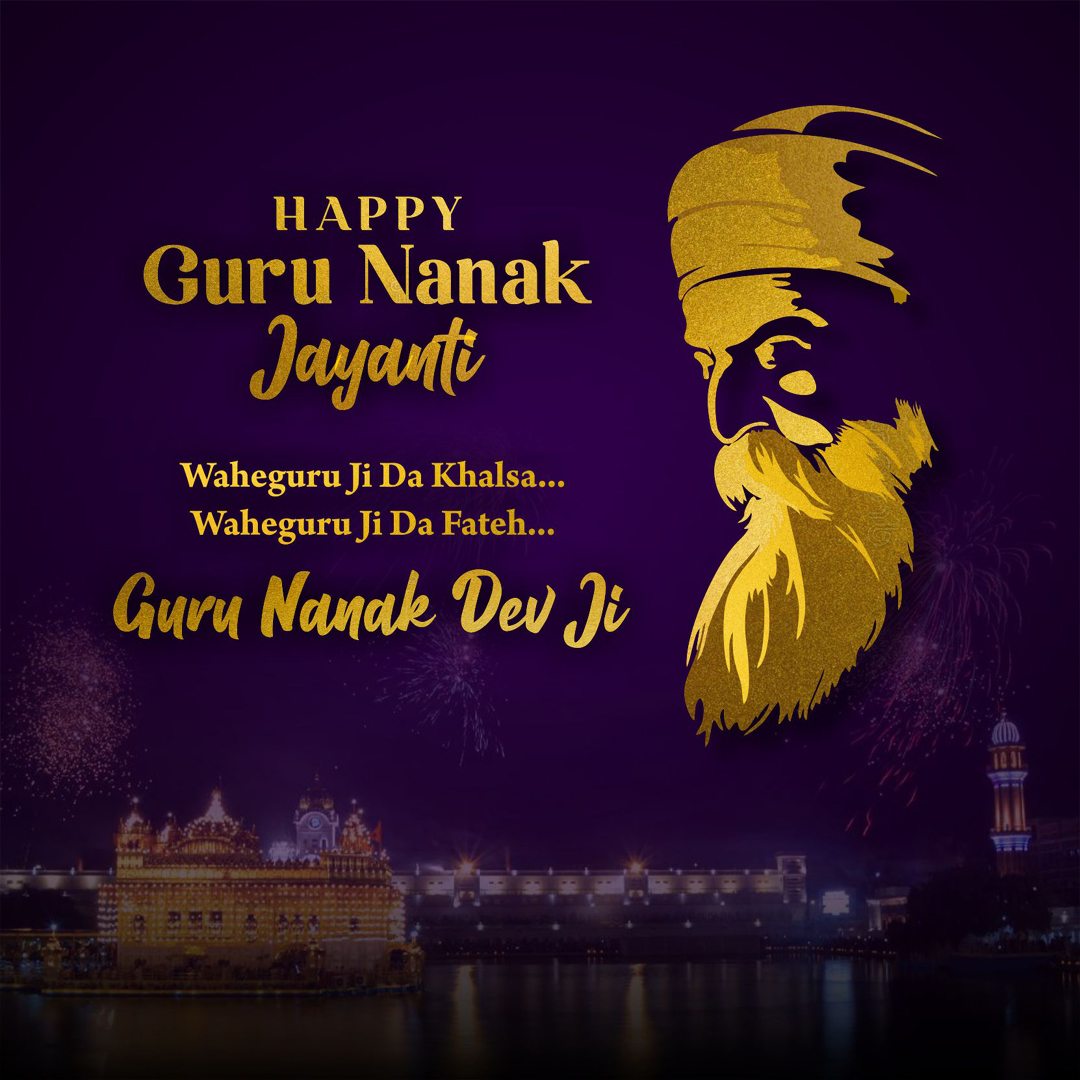 "May Guru Nanak Dev Ji inspire you to achieve all your goals, bless you, with peace and bestow you with eternal joy and happiness. Happy Gurpurab!.”