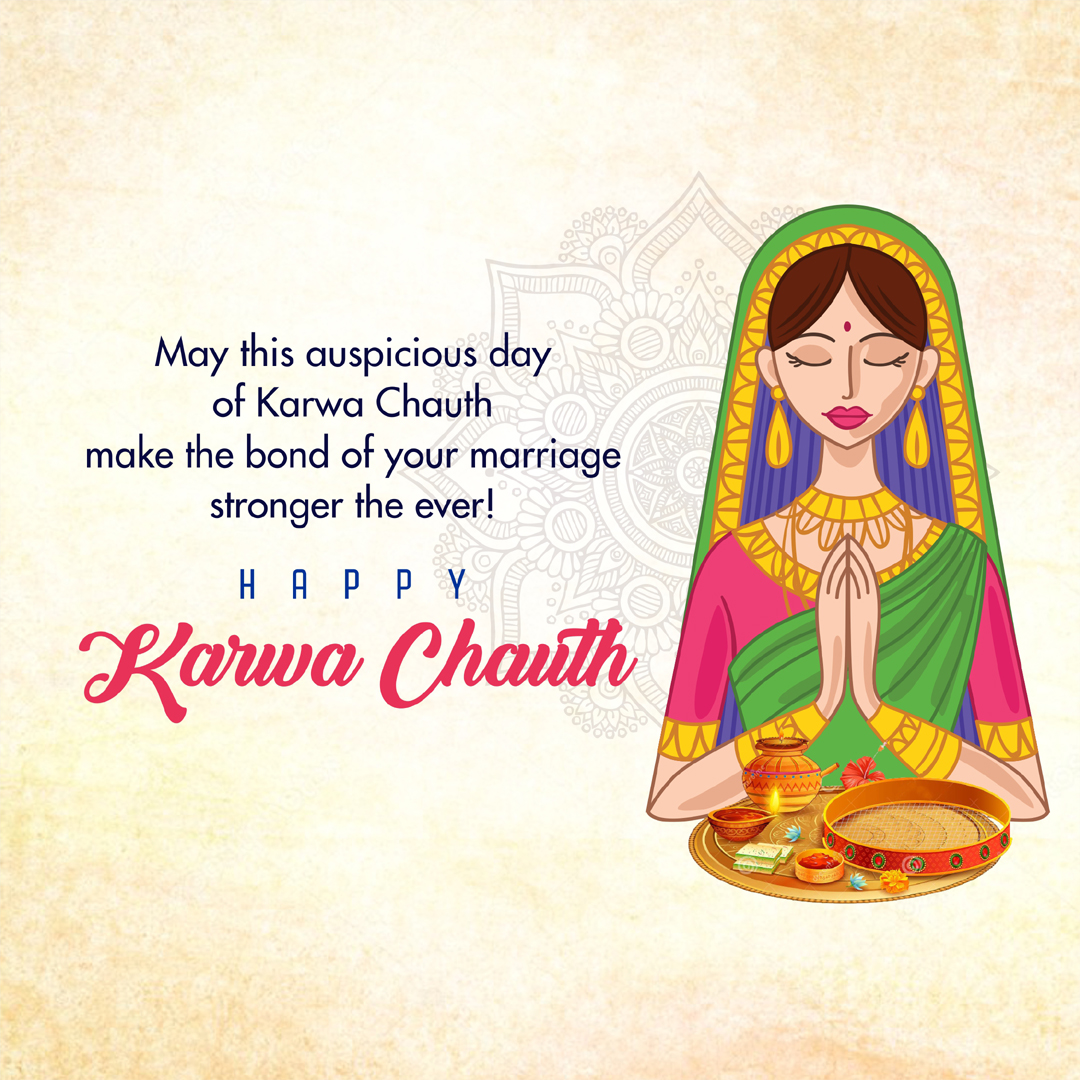 "May this Karwa Chauth bring you and your husband even closer and may you share the strongest bond. Happy Karwa Chauth